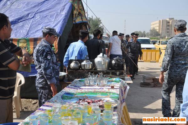 مسؤول إعلام قسم مكافحة المتفجرات المفوض رعد رحيم قال ” بادر قسم مكافحة المتفجرات في ذي قار المتمثل بمديره الرائد عباس كريم فاخر وضباطه ومنتسبيه بإقامة موكب حسيني لإثبات بان القوات الأمنية متعاونة مع المواطنين ونختلف عن النظام السابق بتعاونها مع المواكب الحسينية بالإضافة إلى واجبها بحماية المواطنين والمواكب .