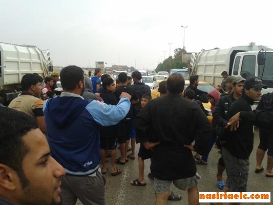 معتصمو مدينة الصدر في الناصريه مستمرون بقطع احد الشوارع الرئيسية حتى تلبية مطالبهم الخدمية ( تقرير مصور)