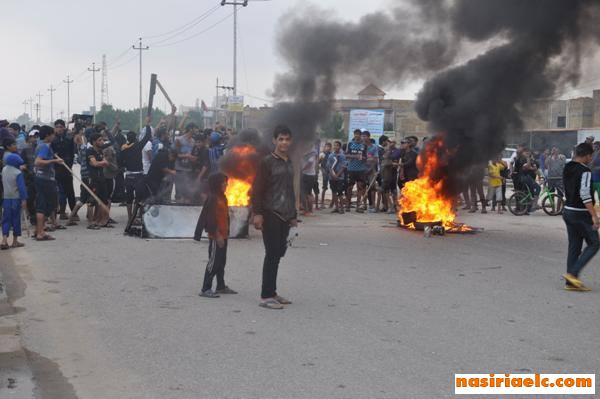وقال مراسل جريدة الناصرية الالكترونية” ان متظاهرين من منطقة حي اور خلف مديرية الرياضة والشباب قاموا باحراق اطارات السيارات وسط الشوارع احتجاجا على غرق مناطقهم بمياه الامطار” مؤكدا ان قوى الدفاع المدني هرعت الى مكان التظاهرة لاخماد الحريق .