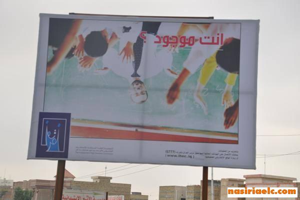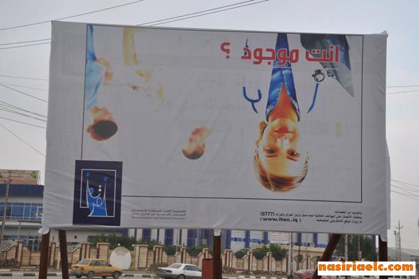 وقال مسؤول الاعلام في مكتب الانتخابات قاسم الربيعي لجريدة الناصرية الالكترونية” انه وضمن الخطة الاعلامية لتحديث سجل الناخبين توجد مادة اعلامية اعدها قسم الاعلام والتصميم في المكتب الوطني وبالتشاور مع مكاتب المحافظات بان تعلق اللافتات لمدة عشرة ايام بصورة مقلوبة .