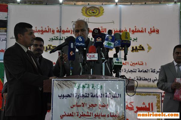 وخلال الاحتفال الذي اقامته الشركة في ذي قار وحضرته جريدة الناصريه الالكترونية قال ” وكيل وزير التجارة وليد حبيب الموسوي ” وضعنا حجر الاساس اليوم الثلاثاء لمشروع سايلو الشطرة المعدني المحال الى شركة المانية رصينة تعمل بتكنولوجيا عالية ، مبينا ان كلفة المشروع تصل الى 13 مليار دينار وبمدة لا تتجاوز 20 شهرا .