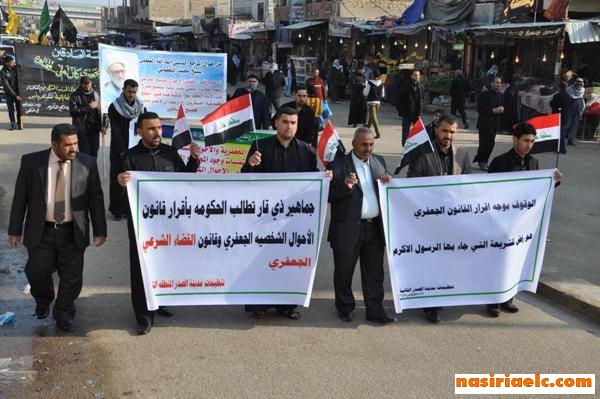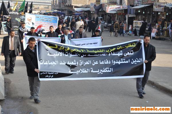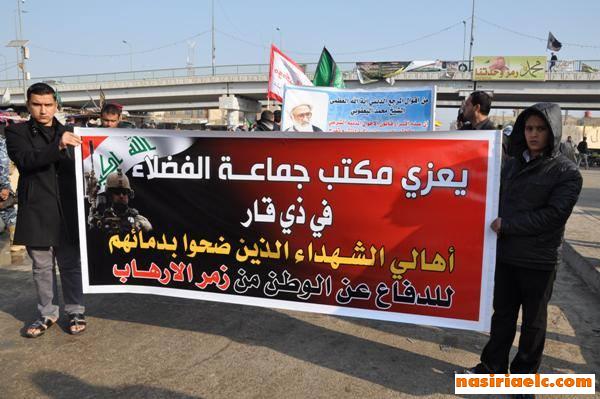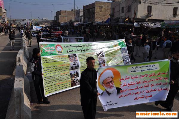 جماهير الناصرية تحيي ذكرى وفاة الرسول محمد (ص) وتدعو الى اقرار القانونين الجعفريين وتاييد الحملة العسكرية ضد الارهاب