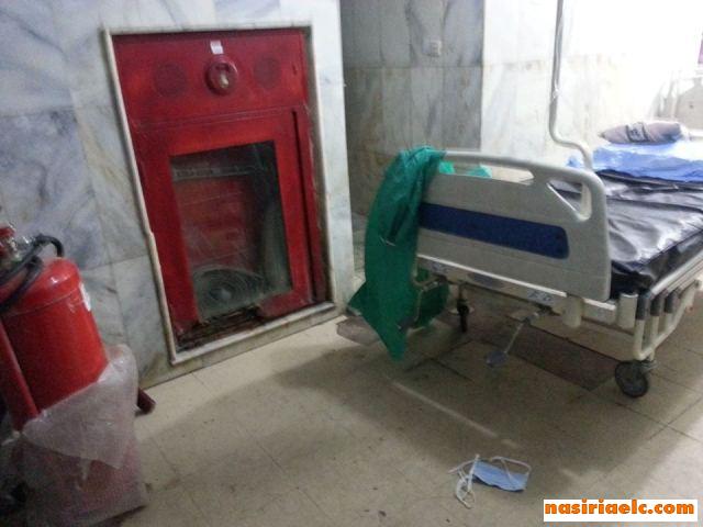 جريدة الناصرية الالكترونية تنشر صورا حصريه لحادث الحريق الذي تعرض له مستشفى الحسين التعليمي اليوم الاربعاء في الناصريه . واشارت المصارد ان الحريق اندلع في مكانين منفصلين وهما دار الاطباء والطابقين الخامس والسادس . واغلب المصادر تؤكد ان الحريق ناتج بفعل مدبر من احد العاملين في المستشفى .