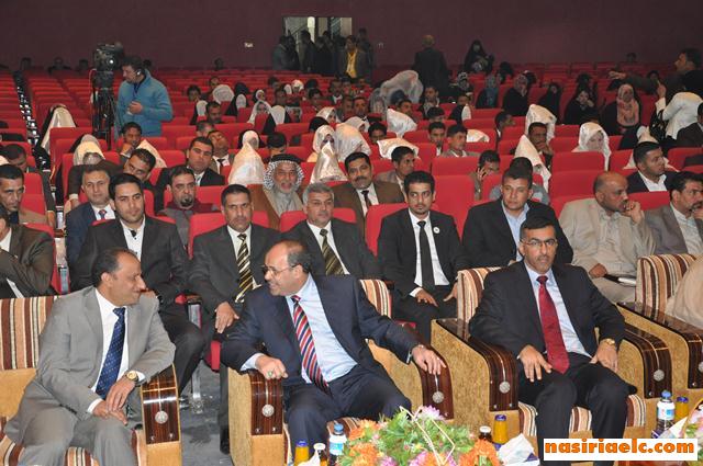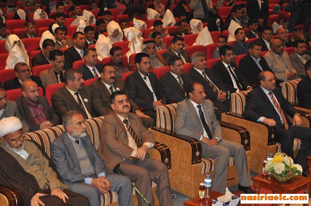 محافظ ذي قار يحيى الناصري قال في كلمته ” في هذا الحفل للزواج الجماعي للمعاقين والذي ضم 59 عريسا وعروس نتمنى كل التوفيق للعرسان خصوصا من محافظتي واسط والمتنى الذين حلوا ضيوفا على ذي قار . وبالتأكيد هم بحاجة الى رعاية ومشافي خاصة واطراف صناعية لتحسين ظروفهم المعيشية والخدمية .