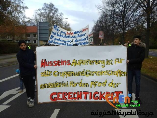 وبين النوري” ان المسيرة حضرها رئيس شرطة المدينة و قواته ومن مجلس البلدية و الصحفيين المان وعرب و جمع من الاخوة اهل السنة و المسيحية الالمان و الجاليات الاخرى من العرب و غيرهم, مضيفا انه تم نقل المعزين الى صالة عاشوراء وابتدأنا بتلاوت القران ثم كلمة المركزين المذكورين القاها الحاح احمد دبوس و كلمة باللغة التركية القاها الحاج صفر من وجهاء المدينة ( تركي الجنسية)