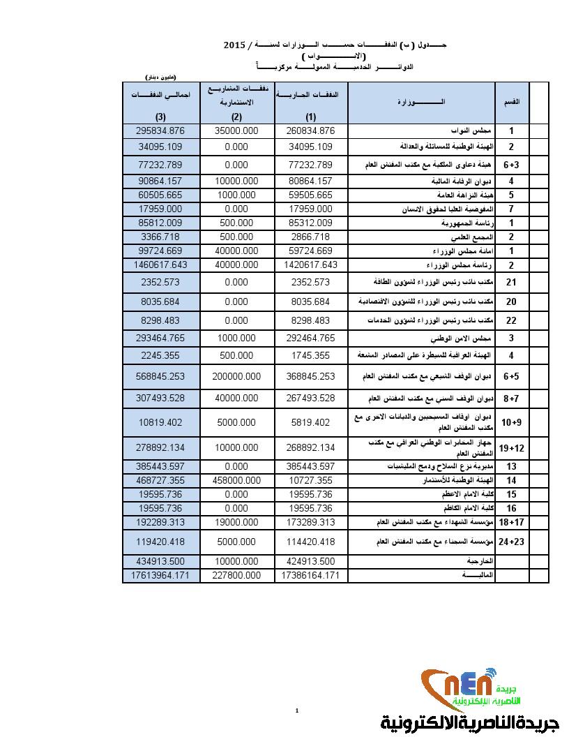 عام جريدة الناصرية الالكترونية تحصل على جدول النفقات للوزارات ضمن موازنة 2015 في 08/01/2015 حصلت جريدة الناصرية الالكترونية على جدول النفقات للوزارات ضمن موازنة 2015 شارك هذا الموضوع: النقر للمشاركة على X (فتح في نافذة جديدة) X انقر للمشاركة على فيسبوك (فتح في نافذة جديدة) فيس بوك مرتبط أكمل القراءة