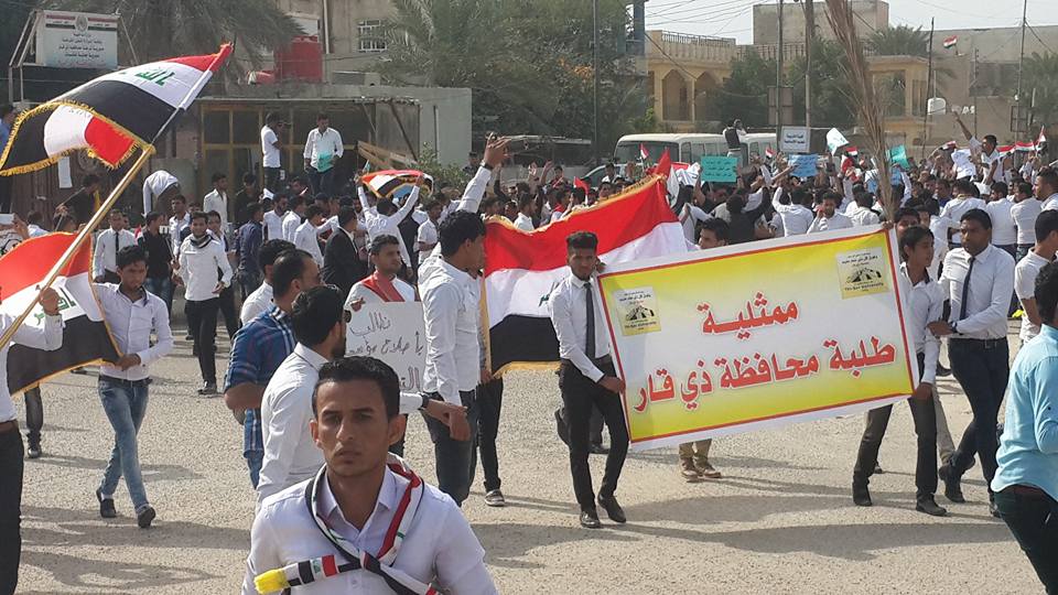 وقال مراسل جريدة الناصرية الالكترونية ” ان المئات من طلبة جامعة ذي قار خرجوا بتظاهرة صباح اليوم للمطالبة باقالة وزير التعليم العالي حسين الشهرستاني واجراء اصلاحات شاملة للواقع التعليمي للجامعة، مبينا” ان المتظاهرين طالبوا ايضا بضرورة تحسين واقع الاقسام الداخلية