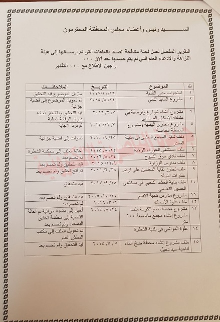 أخبار الناصريةعام بالوثائق: تعرف على أهم قضايا الفساد في ذي قار في 07/01/2018 حصلت جريدة الناصرية الالكترونية، اليوم الأحد، على وثائق تكشف عن ابرز قضايا الفساد المحالة للنزاهة أو القضاء او المفتش العام. وبحسب الوثائق فأن مجموع هذه القضايا بلغ عدد القضايا 21 ملف فساد. شارك هذا الموضوع: النقر للمشاركة على X (فتح في نافذة جديدة) X انقر للمشاركة على فيسبوك (فتح في نافذة جديدة) فيس بوك مرتبط أكمل القراءة