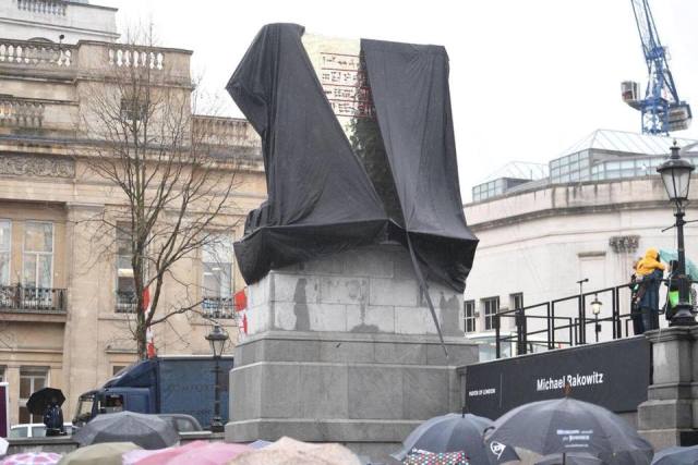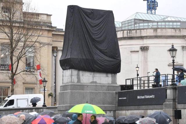 ويعد العمل الذي قام به الفنان الأمريكي مايكل راكوفيتز هو آخر 11 عملا يتم تكليفه باحتلال المنصة الرابعة للمربع، والتي أقيمت في عام 1841 لعرض تمثال للفروسية، لكنه ترك عارية لمدة 158 عامًا بعد نفاد التمويل.