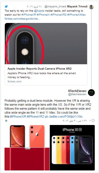 وقالت إن هاتف “آيفون XR2” سيأتي بكاميرا خلفية مزدوجة العدسات بسعر يمكن أن يصل إلى 700 دولار أمريكي.
