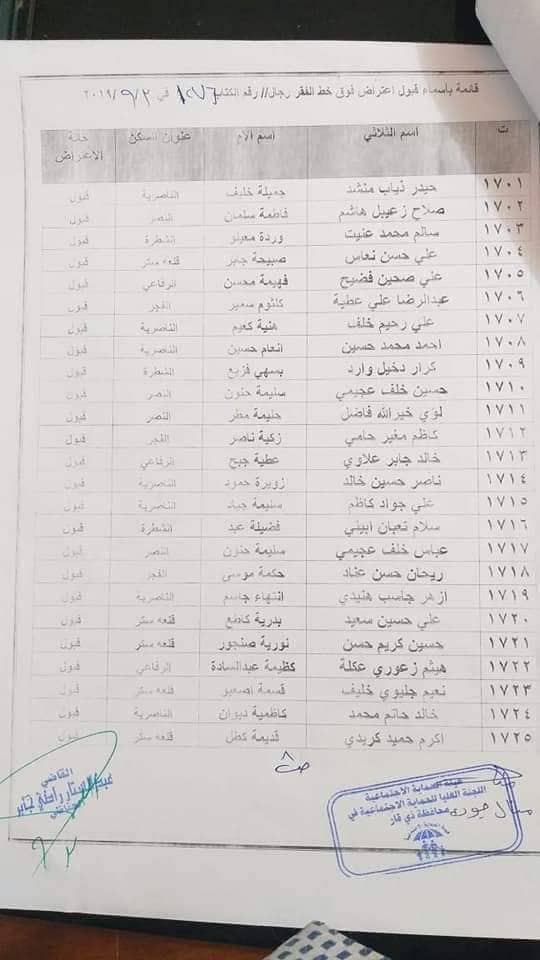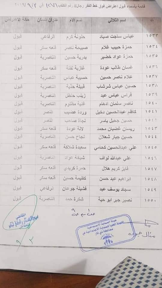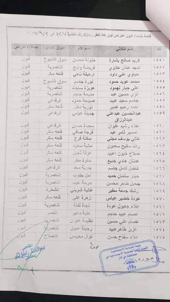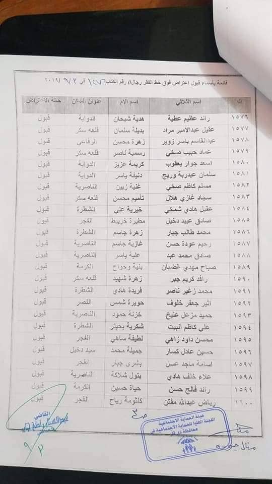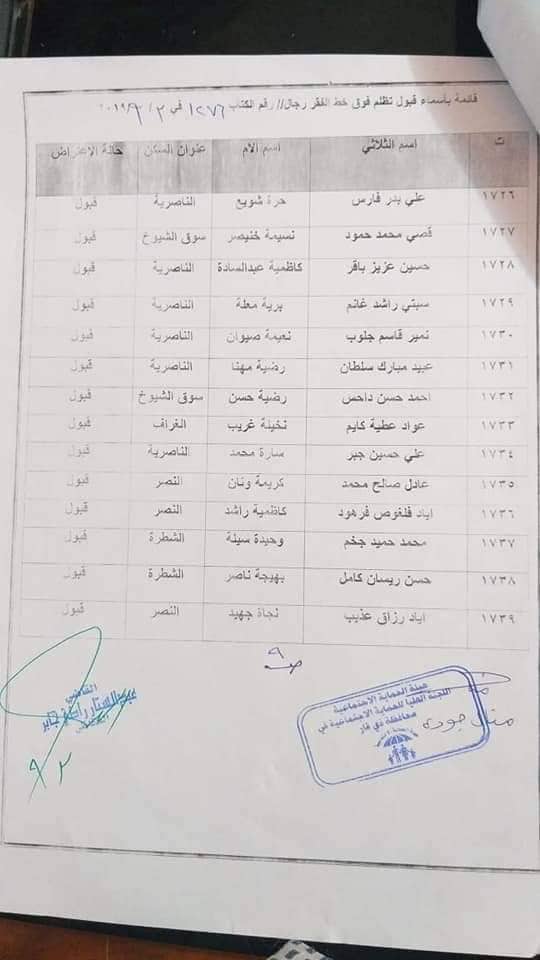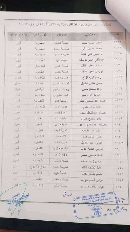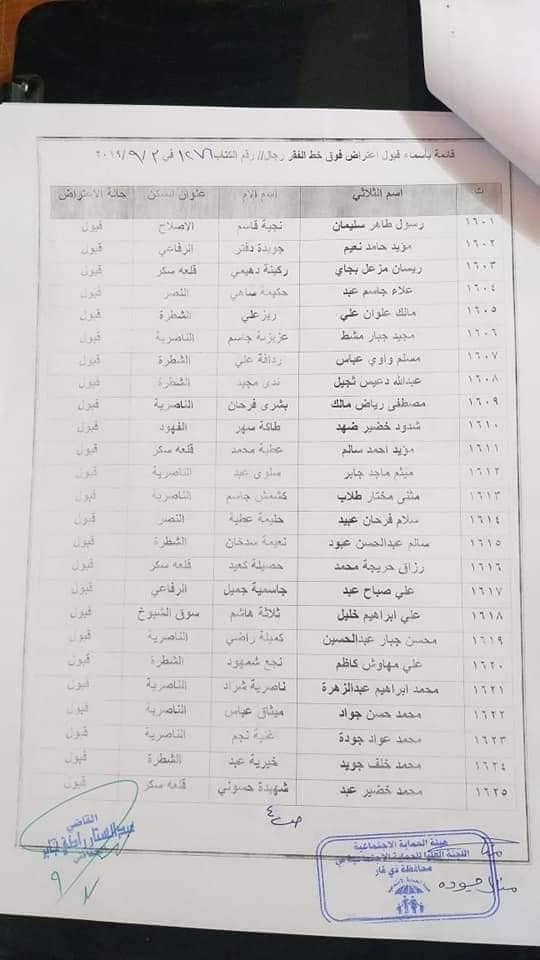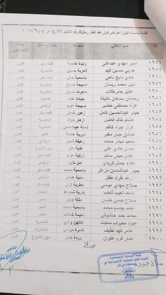 بالاسماء… المقبولة إعتراضاتهم للشمول على شبكة الحماية الاجتماعية في ذي قار