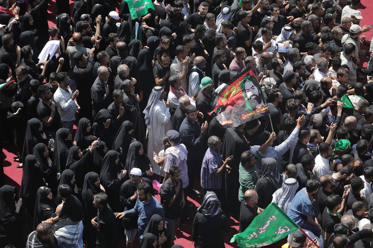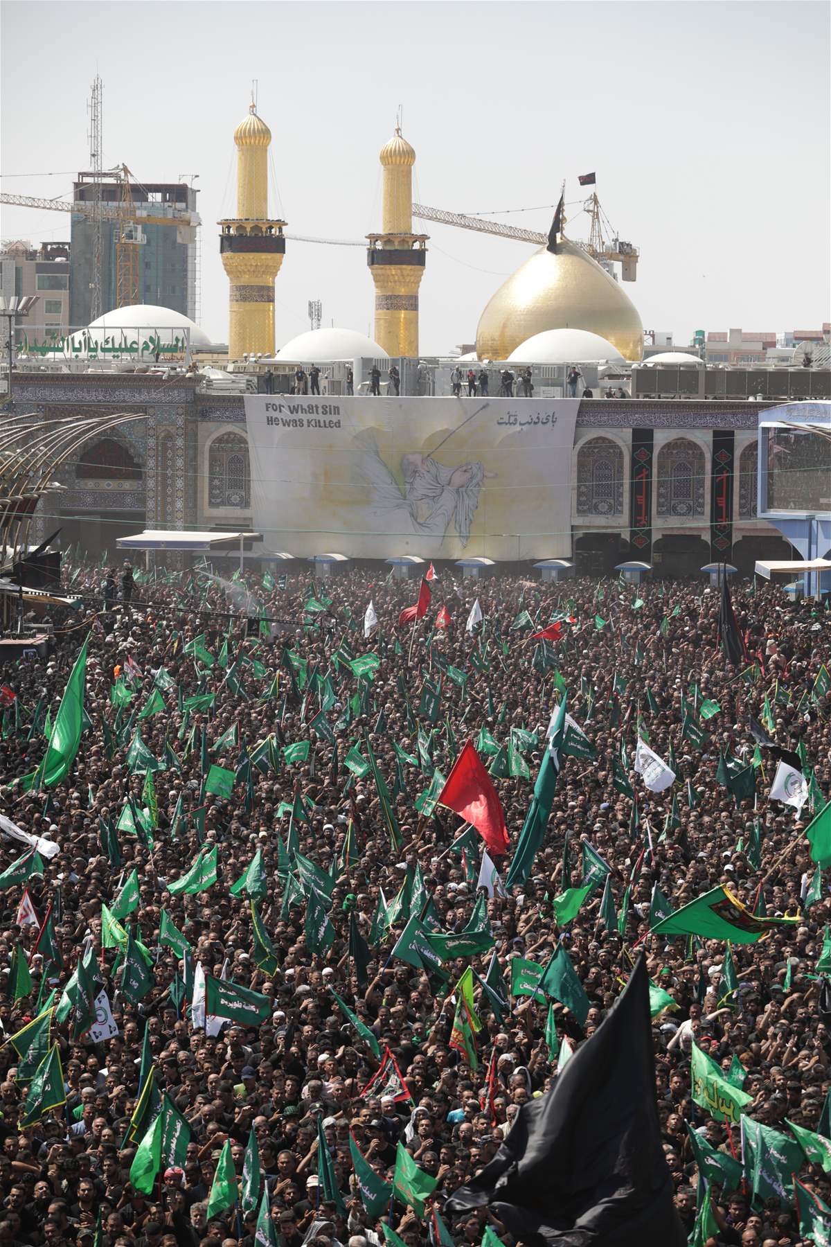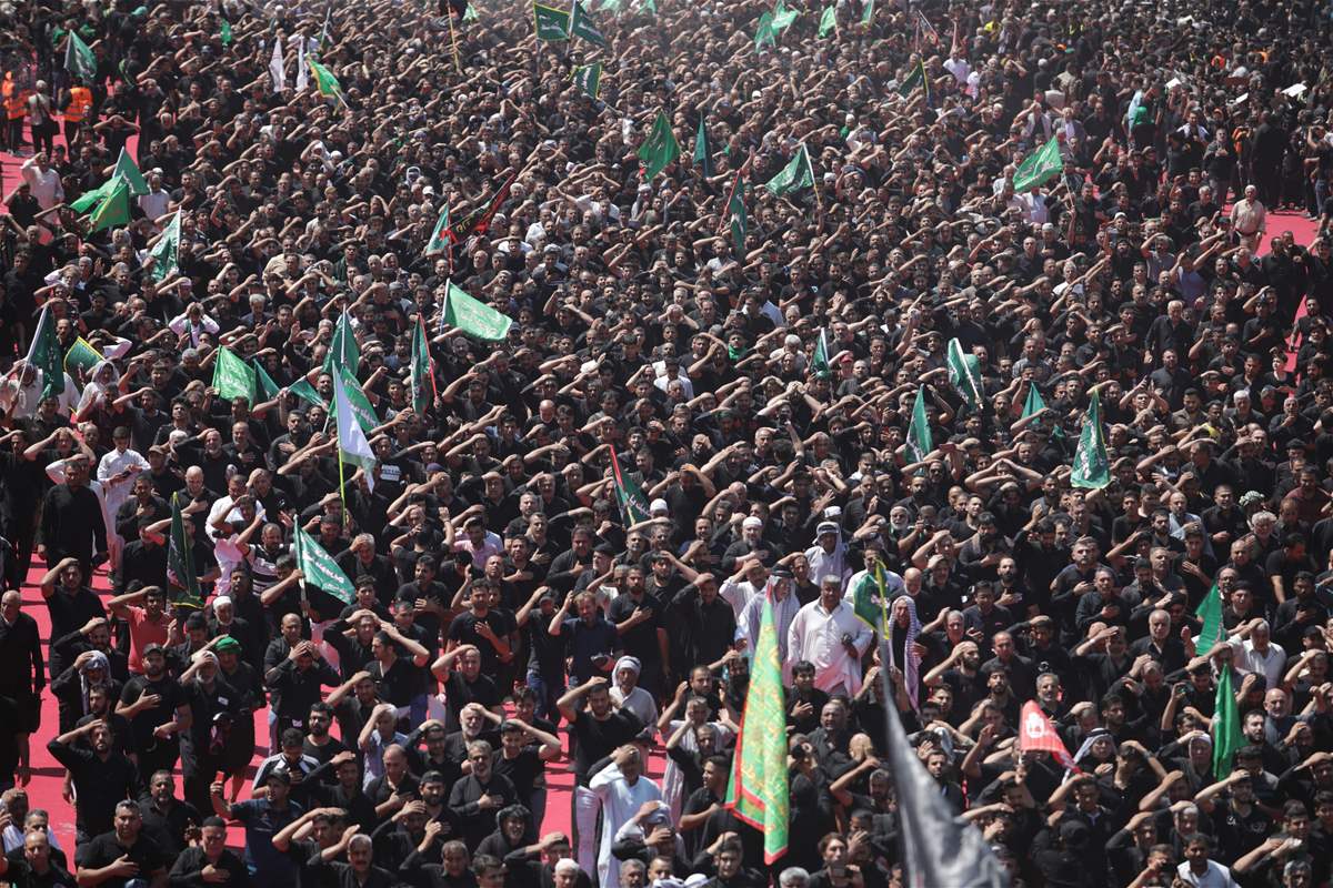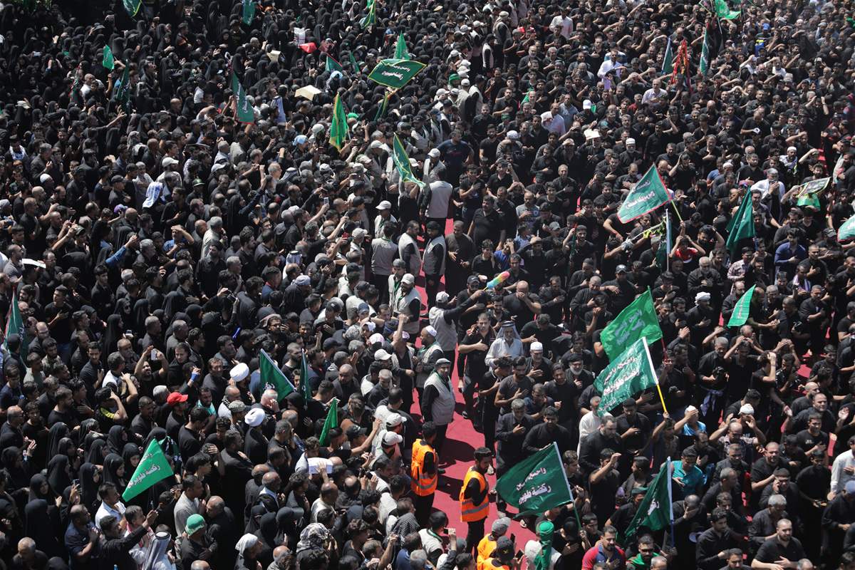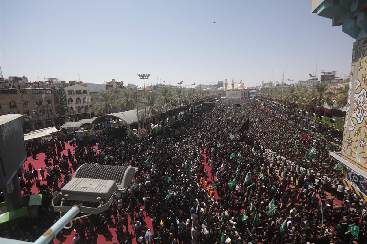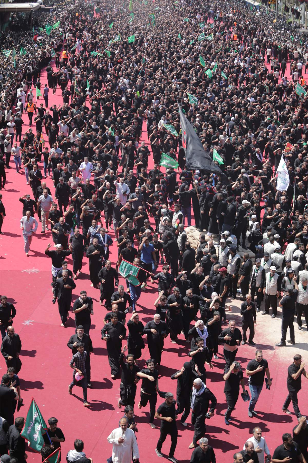 واتجه جموع الزائرين والمعزين ركضا باتجاه مرقد الإمام الحسين (ع) وهم يقومون “بلطم” رؤوسهم تعبيرا عن مظهر الحزن لاستشهاد الامام الحسين.