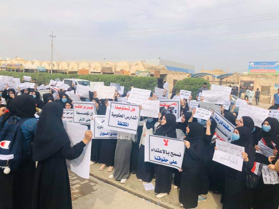 تظاهر العشرات من الطالبات في المدارس الاهلية في الشطرة احتجاجا على منع تدريس المدرسين في المدارس الاهلية.