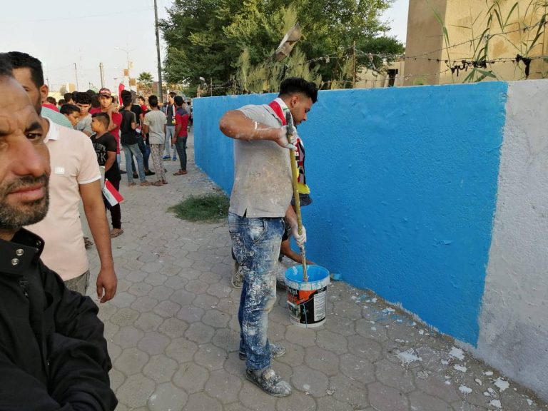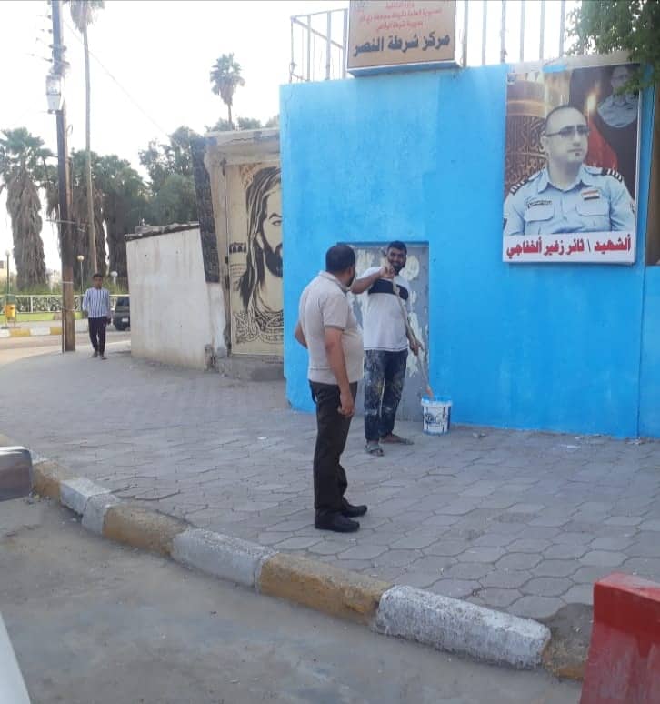 أخبار الناصرية بالصور…حملة شبابية لصبغ مركز شرطة قضاء النصر شمالي الناصرية في 31/10/2019 جريدة الناصرية الالكترونية: نظم مجموعة من المتظاهرين حملة تطوعية لتأهيل الجدار الخارجي لمركز شرطة قضاء النصر حيث بادروا بطلاء الجدار بالألوان وخط ورسم شعارات وزارة الداخلية. شارك هذا الموضوع: النقر للمشاركة على X (فتح في نافذة جديدة) X انقر للمشاركة على فيسبوك (فتح في نافذة جديدة) فيس بوك مرتبط أكمل القراءة