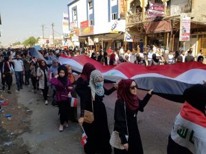 المئات من طلبة المدارس والجامعات يلتحقون بساحة الاعتصام في الناصرية