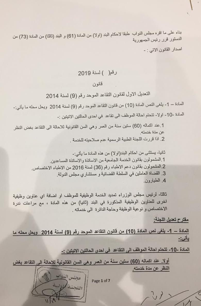 اخبار العراق نص قانون التقاعد الموحد الذي صوت عليه البرلمان في 20/11/2019 جريدة الناصرية الالكترونية: ادناه نص قانون التقاعد الذي صوت عليه مجلس النواب مساء أمس الثلاثاء. شارك هذا الموضوع: النقر للمشاركة على X (فتح في نافذة جديدة) X انقر للمشاركة على فيسبوك (فتح في نافذة جديدة) فيس بوك مرتبط أكمل القراءة