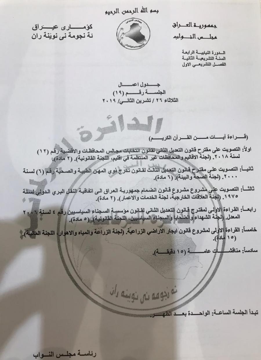 اخبار العراق تعرف على جدول اعمال البرلمان لجلسة اليوم “وثيقة” في 26/11/2019 شارك هذا الموضوع: النقر للمشاركة على X (فتح في نافذة جديدة) X انقر للمشاركة على فيسبوك (فتح في نافذة جديدة) فيس بوك مرتبط أكمل القراءة