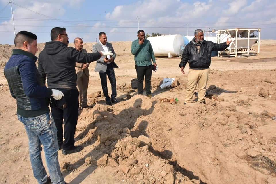 وقالت الشرطة في بيان، تلقته جريدة الناصرية الالكترونية، أنه “بناءا على الاخبار المبلغ الينا من شركة تقوم بأعمال حفريات بمدينة الناصرية قرب مزار ( السيد ذهب ) بوجود مقبرة جماعية توجه قسم العلاقات والاعلام الى جانب اقسام الشرطة الاختصاصية للاطلاع على الموقع”.