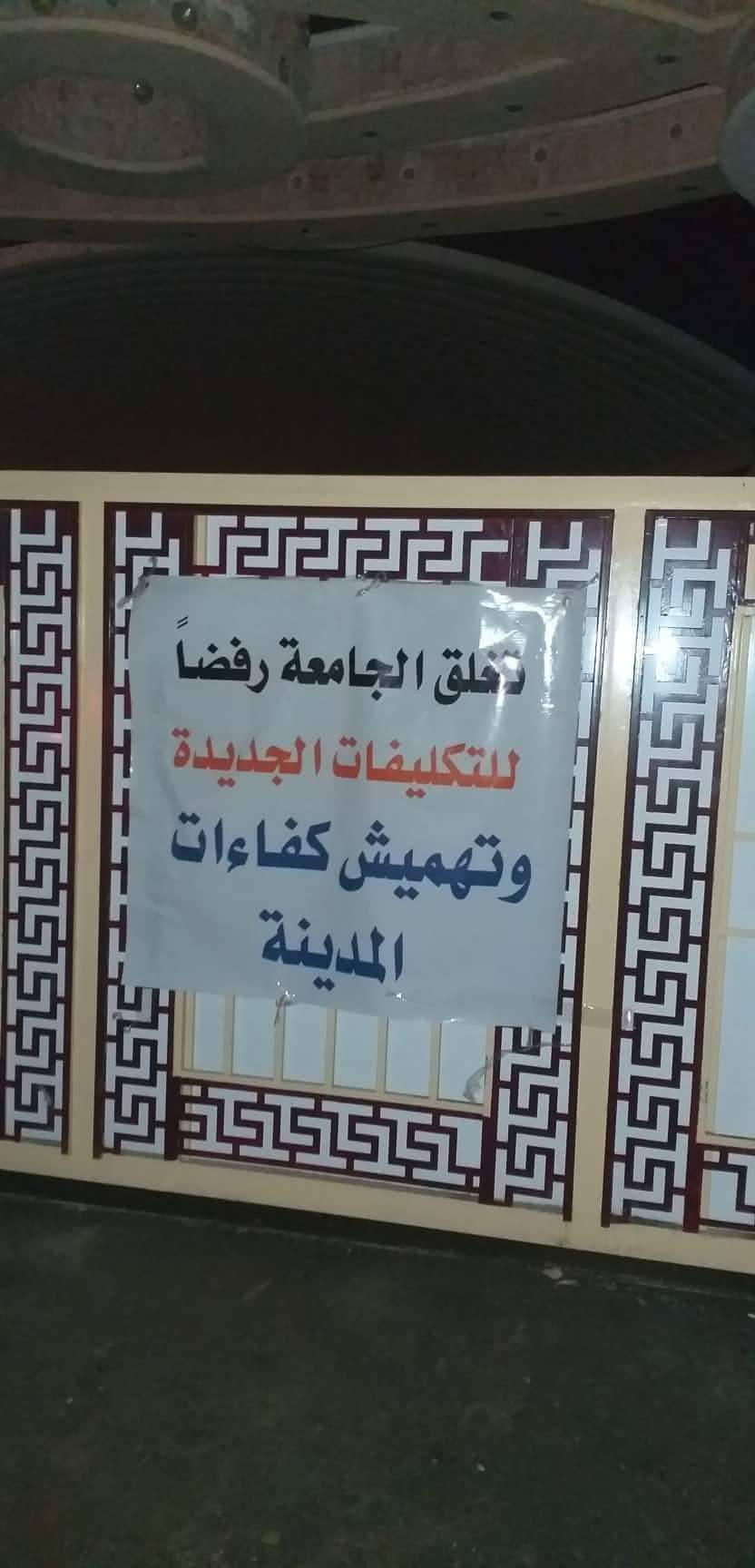 وقام المتظاهرون في إغلاق مبنى الجامعة الى اشعار اخر، اي حتى تعيد وزارة التعليم النظر بقراراتها.