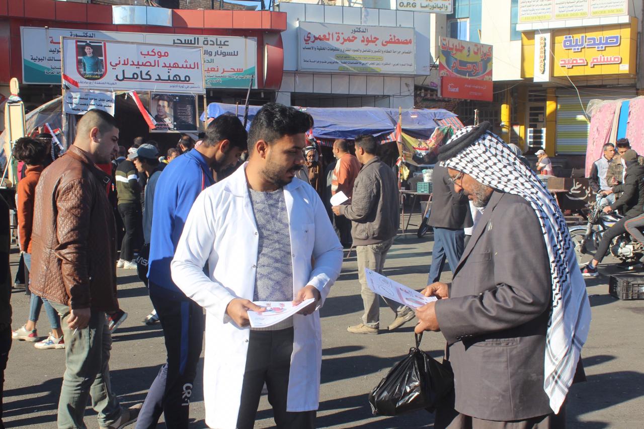 أقامت شعبة تعزيز الصحة في دائرة صحة ذي قار حملة توعوية حول مرض انفلونزا الموسمية في ساحات التظاهر وسط الناصرية.