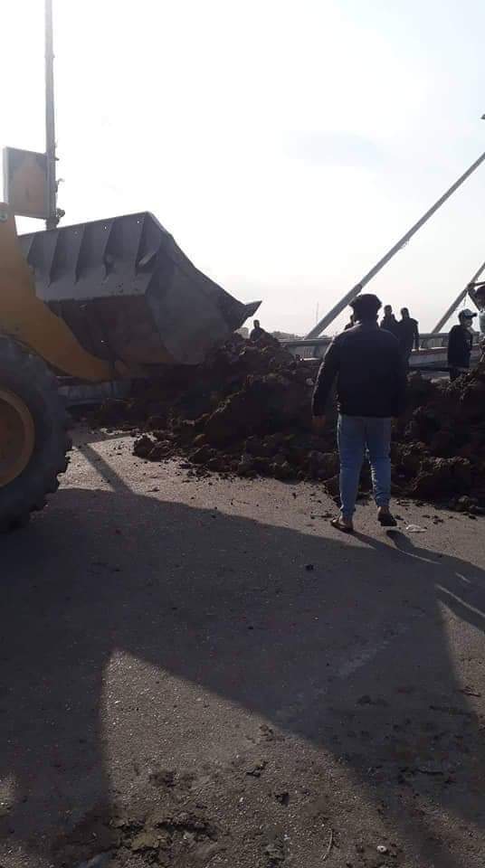 بالصور..بسبب أحداث أمس في ساحة الحبوبي..إغلاق جسر الحضارات بسواتر ترابية