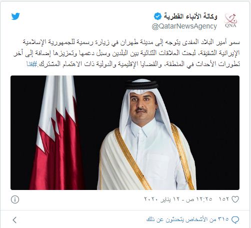 وقالت وكالة الأنباء القطرية، إن “الأمير سيتوجه إلى العاصمة الإيرانية طهران في زيارة رسمية “لبحث العلاقات بين البلدين، والقضايا الإقليمية والدولية ذات الاهتمام المشترك”.
