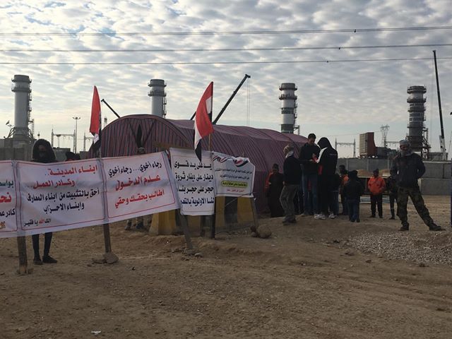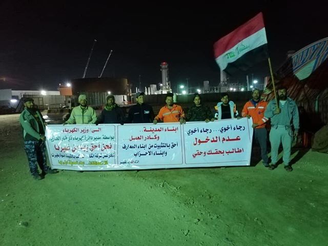 نظم العشرات من العاملين في الشركة المنفذة لمشروع المحطة الغازية في الناصرية، إعتصاما مفتوحا امام مقر المحطة، بعد أن تم فسخ عقودهم بعد انتهاء العمل.