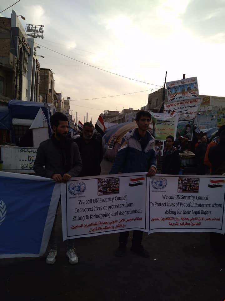 أخبار الناصرية بالصور…متظاهرو ذي قار يطالبون مجلس الأمن الدولي والأمم المتحدة بتوفير الحماية لهم في 18/01/2020 جريدة الناصرية الالكترونية: دعا متظاهرو محافظة ذي قار، اليوم السبت، مجلس الأمن الدولي والأمم المتحدة إلى توفير حماية للمتظاهرين السلميين من القتل والإختطاف والإغتيال. شارك هذا الموضوع: النقر للمشاركة على X (فتح في نافذة جديدة) X انقر للمشاركة على فيسبوك (فتح في نافذة جديدة) فيس بوك مرتبط أكمل القراءة
