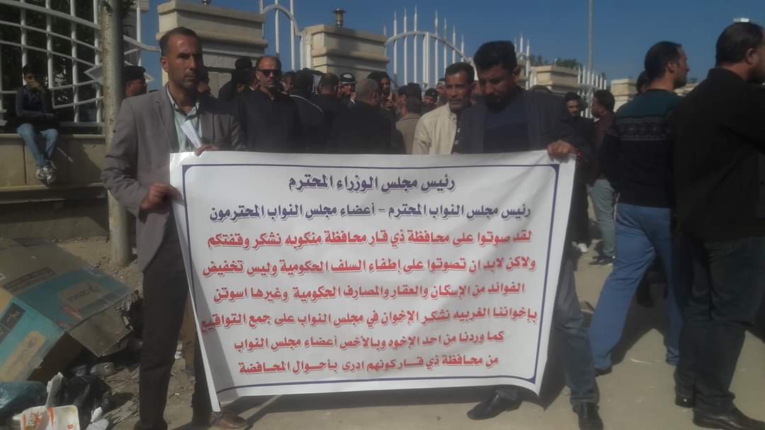 بالصور…تظاهرات لمواطنين أمام صندوق إسكان ذي قار مطالبين بإسقاط القروض عنهم