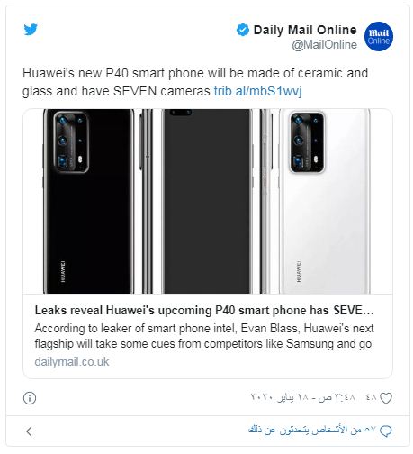 وكشف إيفان بلاس، Evan Blass، المسرب لآخر أخبار الهاتف الذكي بانتظام، أن عملاق التكنولوجيا الصيني، هواوي، سيأخذ بعض الإشارات من المنافسين، مثل سامسونغ، ويدخلها جميعا في مجموعة الكاميرا الخلفية، المجهزة بخمسة مستشعرات بصرية.
