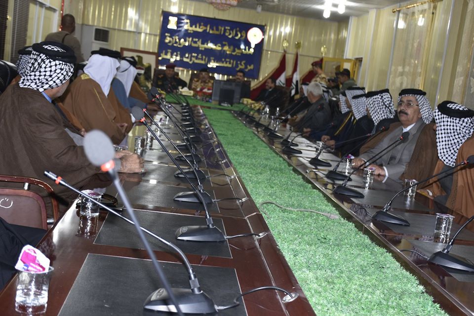 عقدت مديرية شرطة محافظة ذي قار والمنشات ذي قار صباح، اليوم الخميس، مؤتمرا عشائريا برئاسة قائد عمليات الرافدين اللواء الركن جبار نعيمة وقائد شرطة ذي قار العميد المهندس والحقوقي ناصر لطيف الاسدي وبحضور عددا من شيوخ عشائر المحافظة الكرام”.