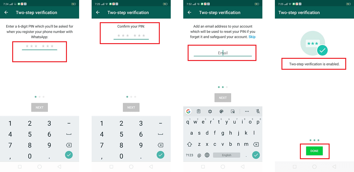 - ستتم مطالبتك بإدخال رمز مرور مكون من ستة أرقام، ثم تأكيده عن طريق إدخال الرقم مرة أخرى، ومن المهم جدًا أن تتذكر هذا الرقم لأنه سيكون كلمة المرور الجديدة التي ستستخدمها لفتح حسابك على واتساب بشكل أساسي.