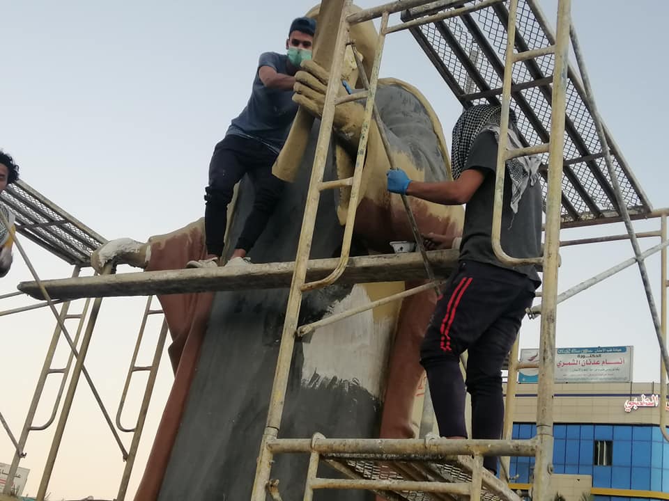 بلدية الناصرية تستغرب من إعمال صبغ تمثال الحبوبي وتعتبره تشويها لمعالم المدينة