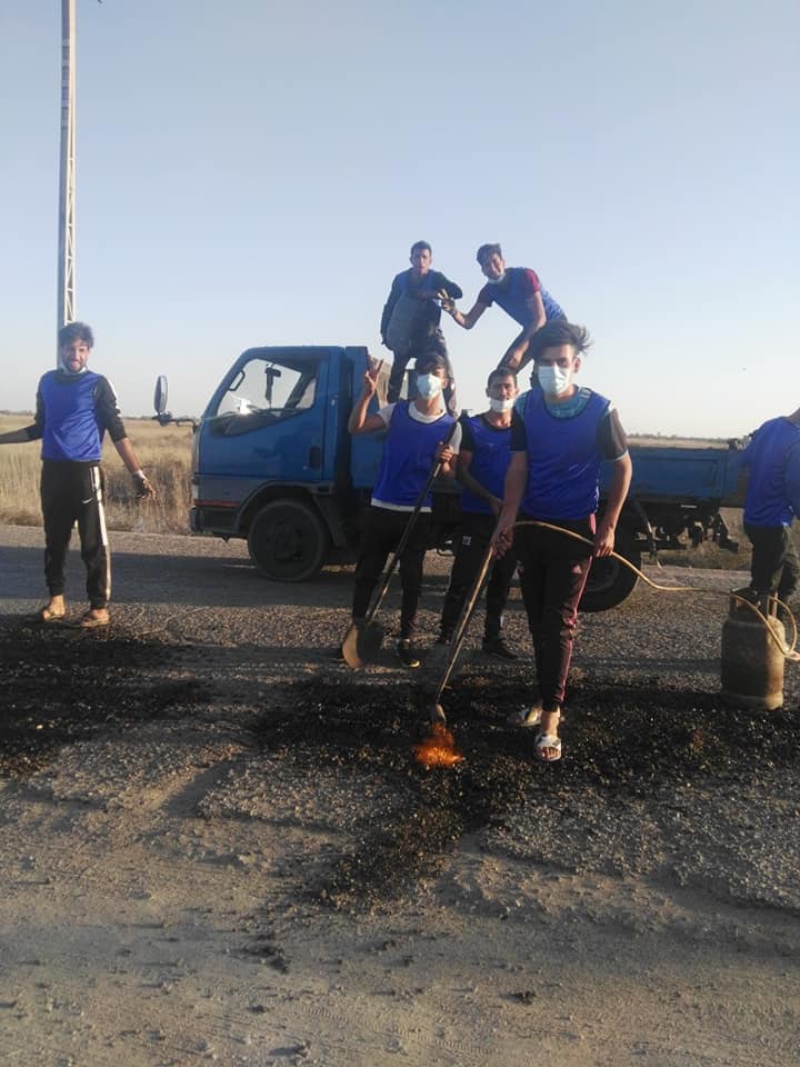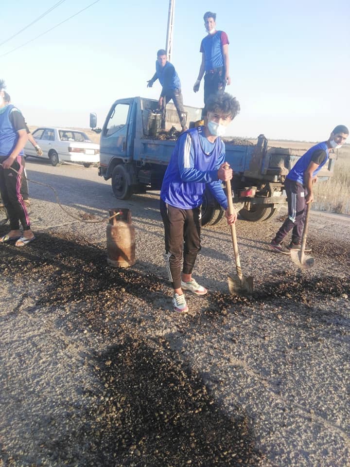 حيث قام الشباب وهم من عشيرة البو جسام في منطقة القبس بكرمة بني سعيد جنوب قضاء سوق السيوخ بإكمال وتصليح كافة التخسفات على طول الطريق بمادة القلع القيري.