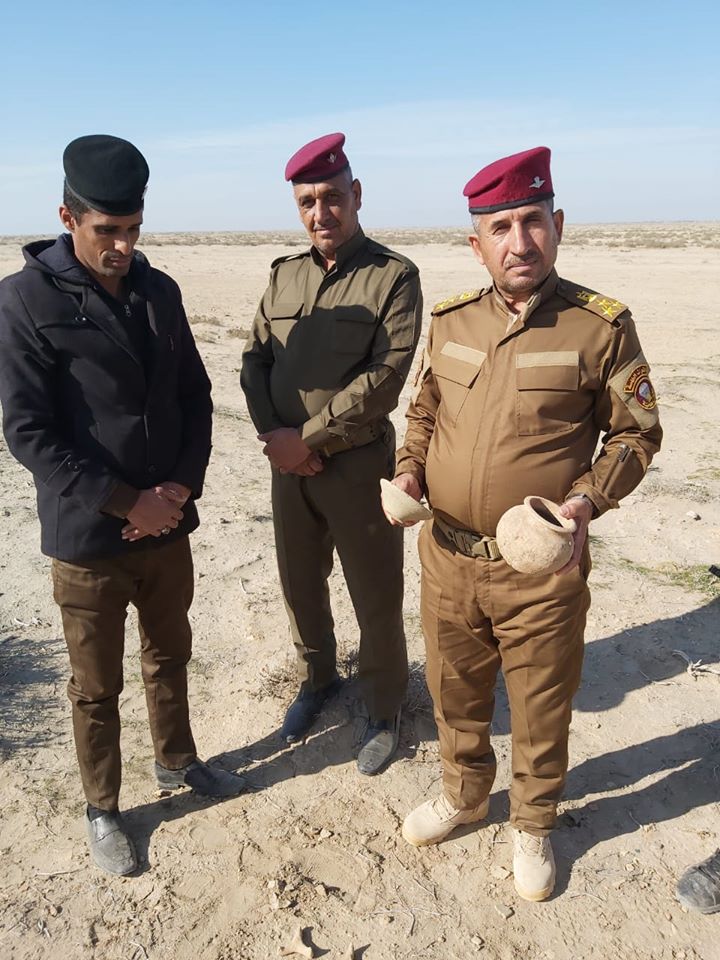 وتابع البيان، من خلال التفتيش تم العثور على قطع آثارية مختلفة الأشكال والأحجام وتبلغ عدد القطع(٢١) قطعة اثرية جنوب غرب الرفاعي”.
