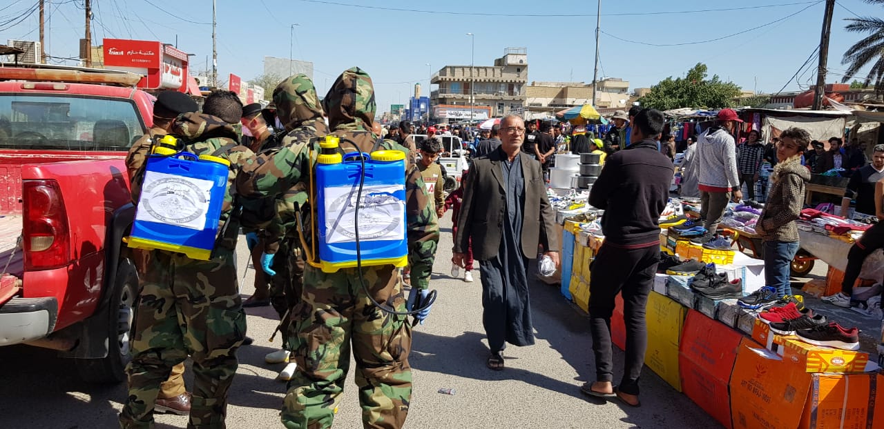 أعلنت صحة ذي قار، وبالتعاون مع مديرية الدفاع المدني في ذي قار، عن تنفيذ حملة صحية لتطهير ساحات التظاهرات والخيم في منطقة ساحة الحبوبي وسط الناصرية بالإضافة الى الاسواق الواقعة على امتداد شارع النيل من أجل السلامة الصحية للمتظاهرين والمواطنين وحمايتهم من الاصابة بفايروس كورونا.