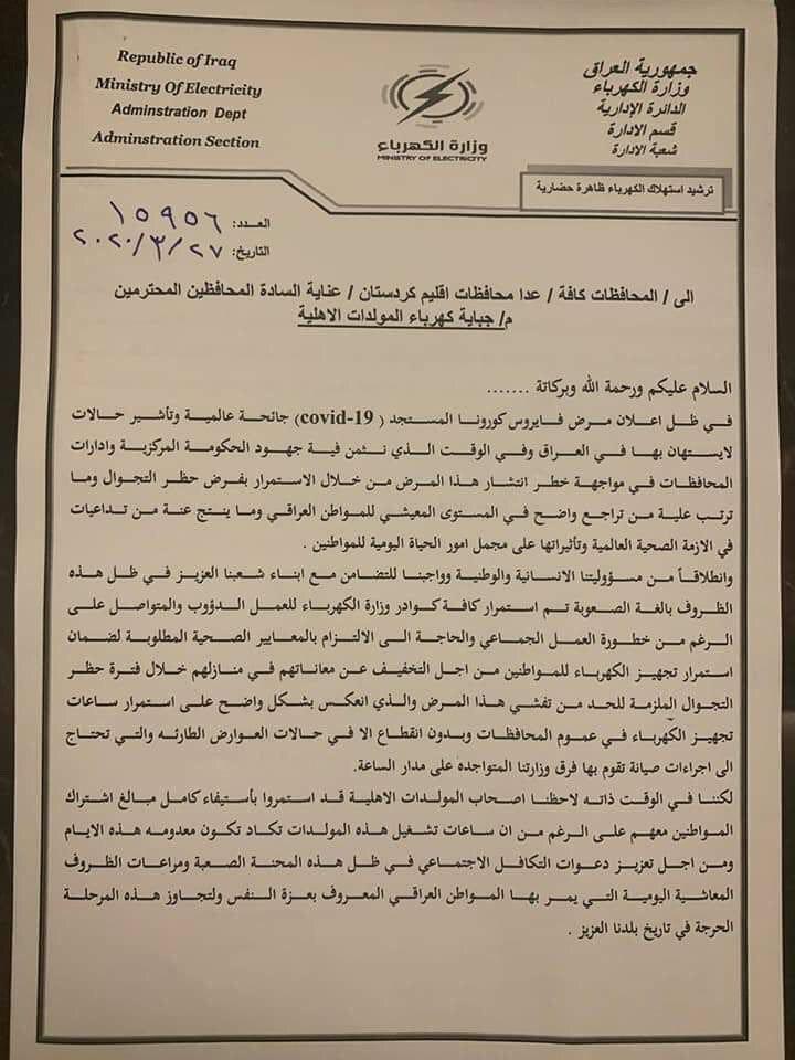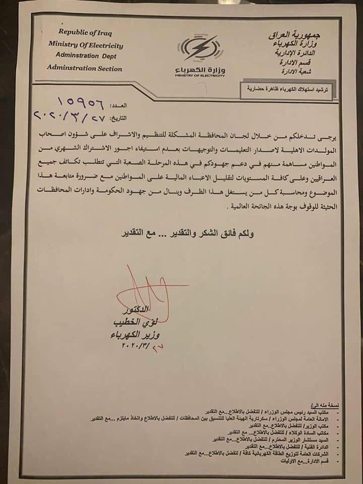 اخبار العراق بالوثائق..الكهرباء تطالب المحافظين تشكيل لجان لمتابعة أجور المولدات الأهلية في 27/03/2020 جريدة الناصرية الالكترونية: بالوثيقة.. الكهرباء تطالب المحافظين بتشكيل لجان لمتابعة أجور المولدات الاهلية. شارك هذا الموضوع: النقر للمشاركة على X (فتح في نافذة جديدة) X انقر للمشاركة على فيسبوك (فتح في نافذة جديدة) فيس بوك مرتبط أكمل القراءة