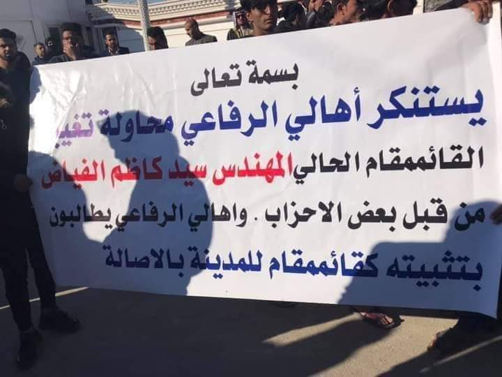 عام بالصور..تظاهرات في الرفاعي بسبب اقالة القائممقام في 20/03/2021 جريدة الناصرية الالكترونية: تظاهر العشرات في قضاء الرفاعي شمالي الناصرية اليوم السبت رافضة لقرار محافظ ذي قار بإقالة القائممقام كاظم الفياض فيما هددوا بالتصعيد في حالة الاصرار على الاقالة. شارك هذا الموضوع: النقر للمشاركة على X (فتح في نافذة جديدة) X انقر للمشاركة على فيسبوك (فتح في نافذة جديدة) فيس بوك مرتبط أكمل القراءة