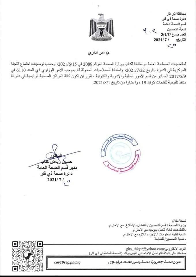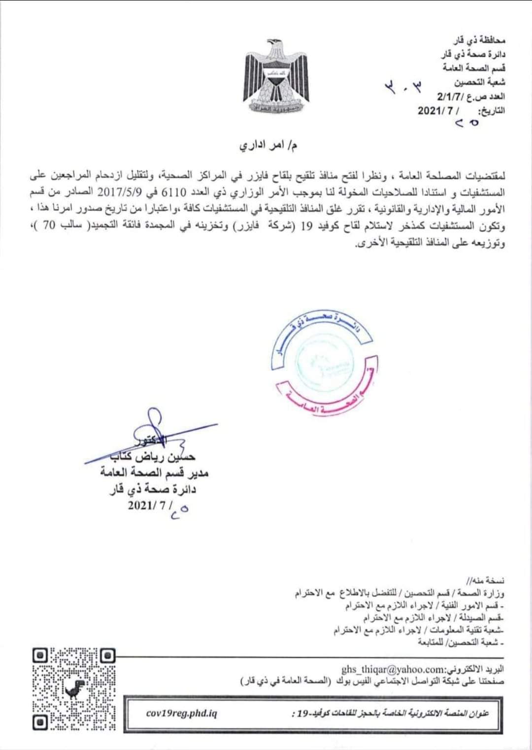 آخر الاخبارأخبار الناصرية ذي قار تقرر فتح المراكز الصحية جميعها لتكون مراكز تلقيح وتغلق منافذ التلقيح في المستشفيات في 25/07/2021 جريدة الناصرية الالكترونية: ذي قار تقرر فتح المراكز الصحية جميعها لتكون مراكز تلقيح وتغلق منافذ التلقيح في المستشفيات. شارك هذا الموضوع: النقر للمشاركة على X (فتح في نافذة جديدة) X انقر للمشاركة على فيسبوك (فتح في نافذة جديدة) فيس بوك مرتبط أكمل القراءة