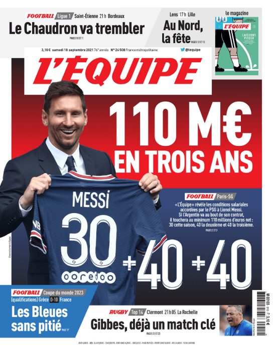 وبحسب الصحيفة الفرنسية فلم يحصل النجم الأرجنتيني ليونيل ميسي على منحة التوقيع، واكتفى بمنحة الوفاء التي تبلغ 10 ملايين يورو في الموسمين الثاني والثالث من عقده.