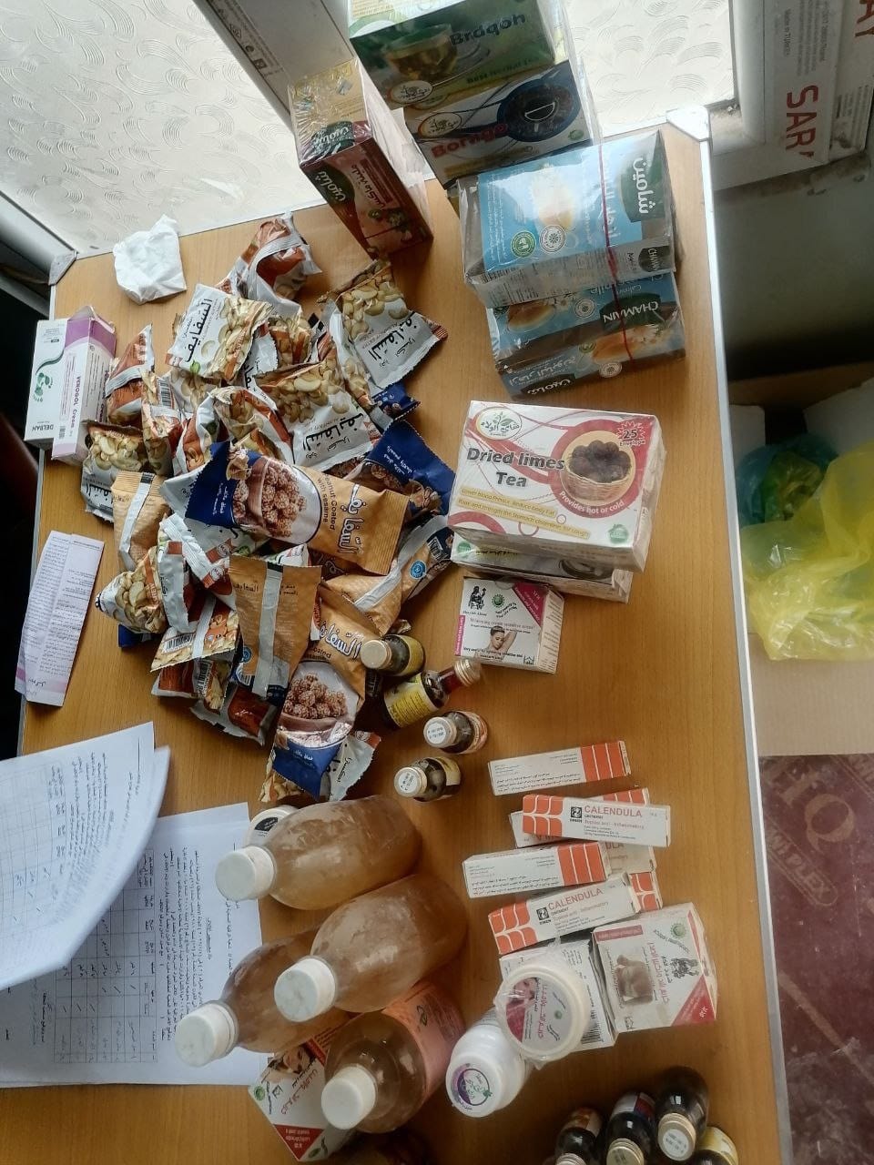 وذكر مسوؤل شعبة الرقابة الصحية حسين جراد لفته انه تم ضبط كميات من المواد الغذائية المنتهية الصلاحية تقدر ب 79 كغم مواد صلبة وكذلك 30 لتراً من المواد السائلة من مواد (الزبيب و زيتون و لبن و كيك ومشروبات غازية وعصائر) وتم اتلافها في موقع الطمر الصحي.