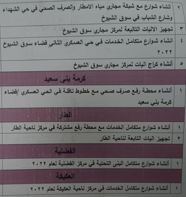 واشار الغزي الى ان “الوجبة الاولى من خطة المديرية اكتملت ل ١٥ وحدة ادارية ، لافتاً الى وجود خطة عمل طموحة تهدف الى انجاز الوجبات الاخرى الخاصة بالمحافظة خلال الايام المقبلة .