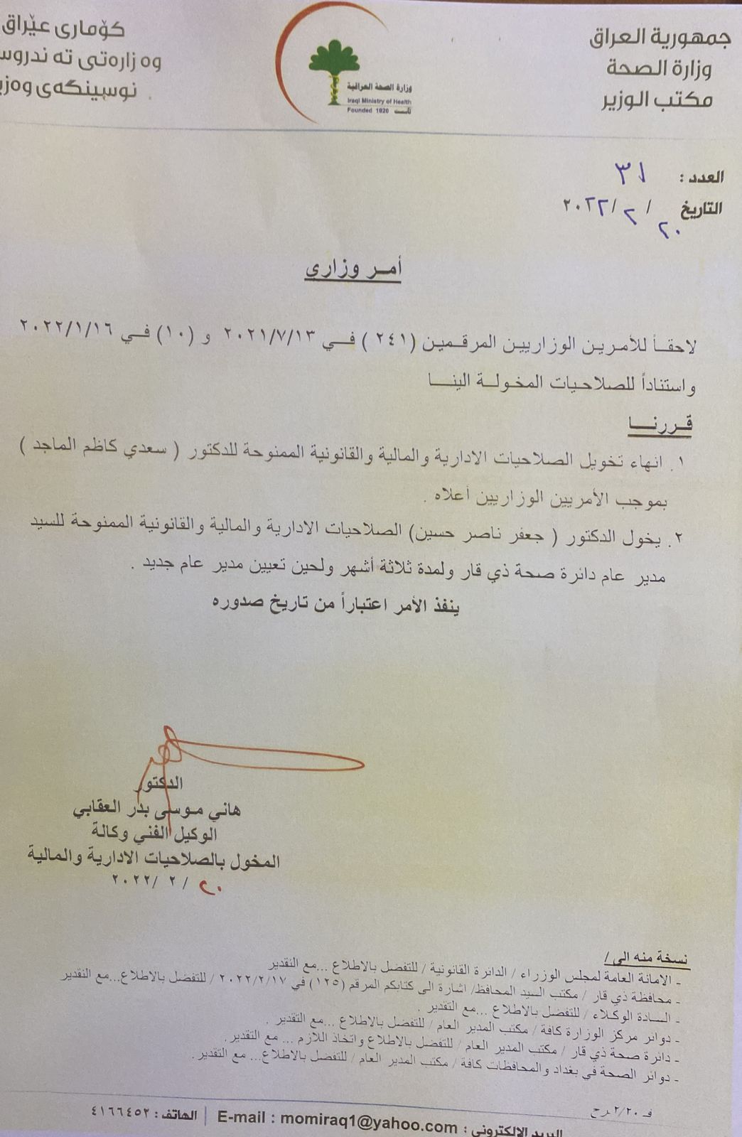 أخبار الناصرية بالوثيقة…اعفاء مدير عام صحة ذي قار من منصبه في 20/02/2022 جريدة الناصرية الالكترونية: بالوثيقة…اعفاء مدير عام صحة ذي قار من منصبه. شارك هذا الموضوع: النقر للمشاركة على X (فتح في نافذة جديدة) X انقر للمشاركة على فيسبوك (فتح في نافذة جديدة) فيس بوك مرتبط أكمل القراءة