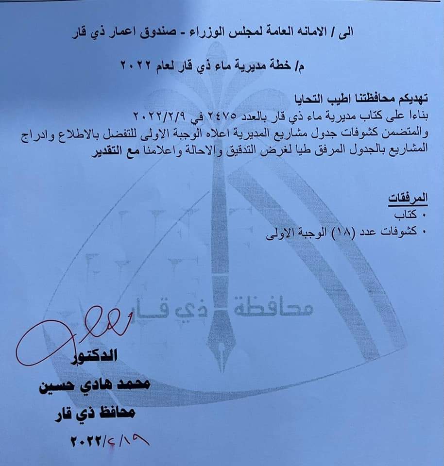 بالوثيقة..ذي قار تعلن اكمال الوجبة الثالثة من مشاريع صندوق اعمار المحافظة