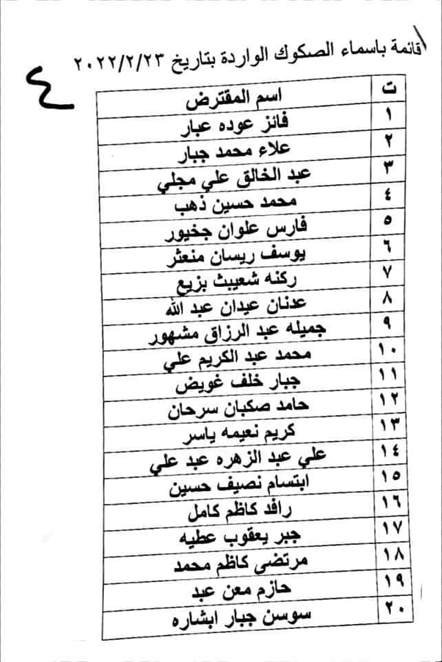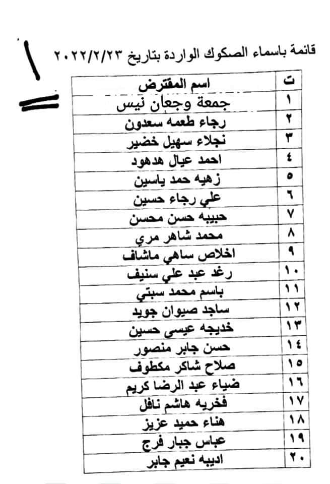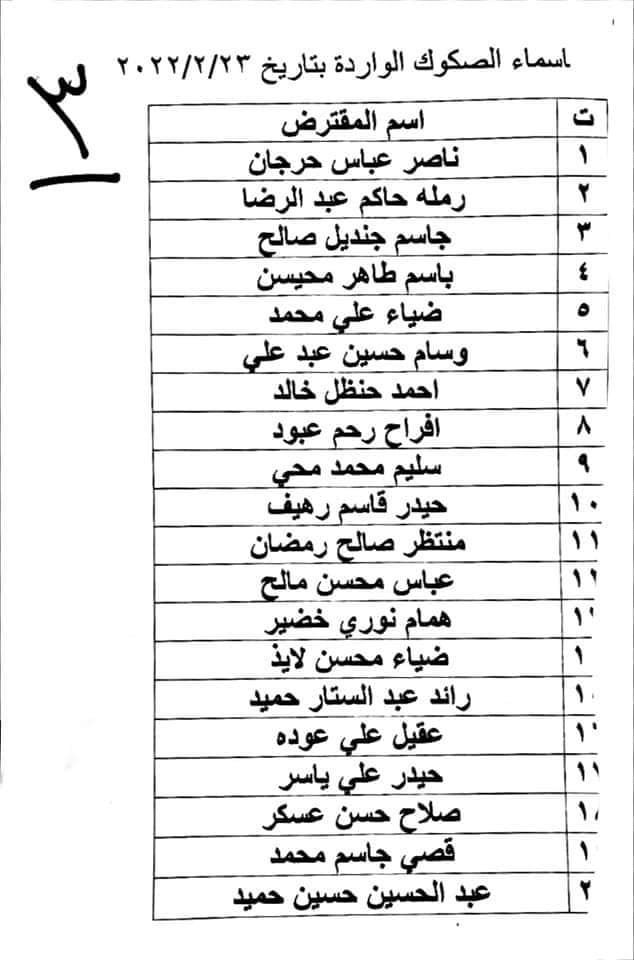 وصلت يوم امس وجبة صكوك جديدة للمقترضين المدرجة اسمائهم في القوائم ادناه مراجعة صندوق الاسكان/ فرع ذي قار/ وحدة الحسابات لغرض استلام الصكوك الواردة الينا اليوم الاربعاء الموافق ٢٣ / ٢ / ٢٠٣٣