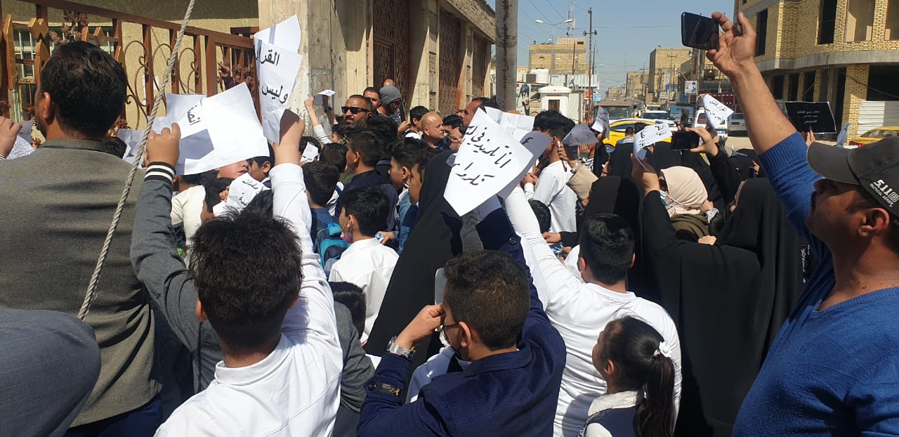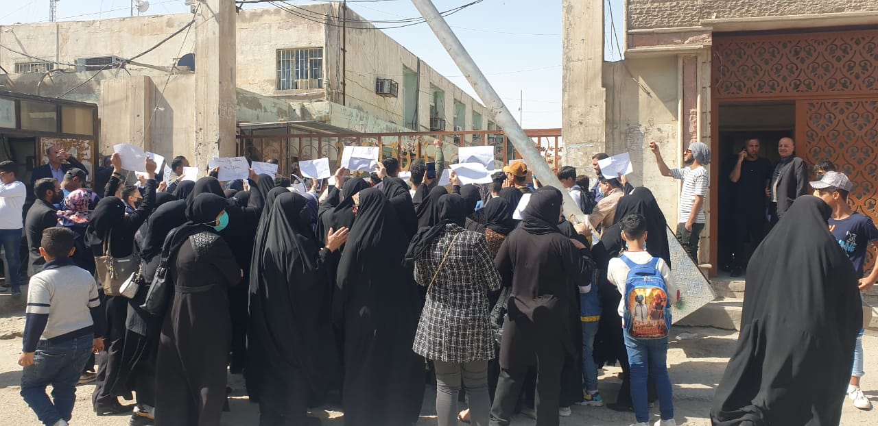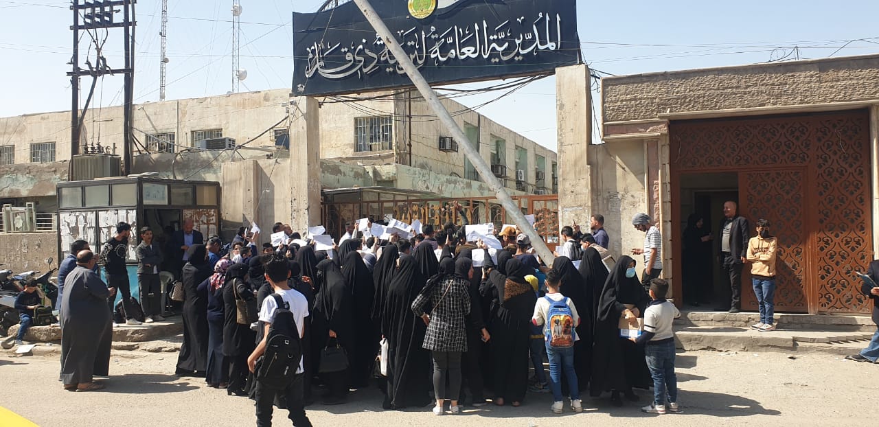 بالصور… وقفة احتجاجية امام تربية ذي قار بسبب نقل كادر تدريسي من احد المدارس