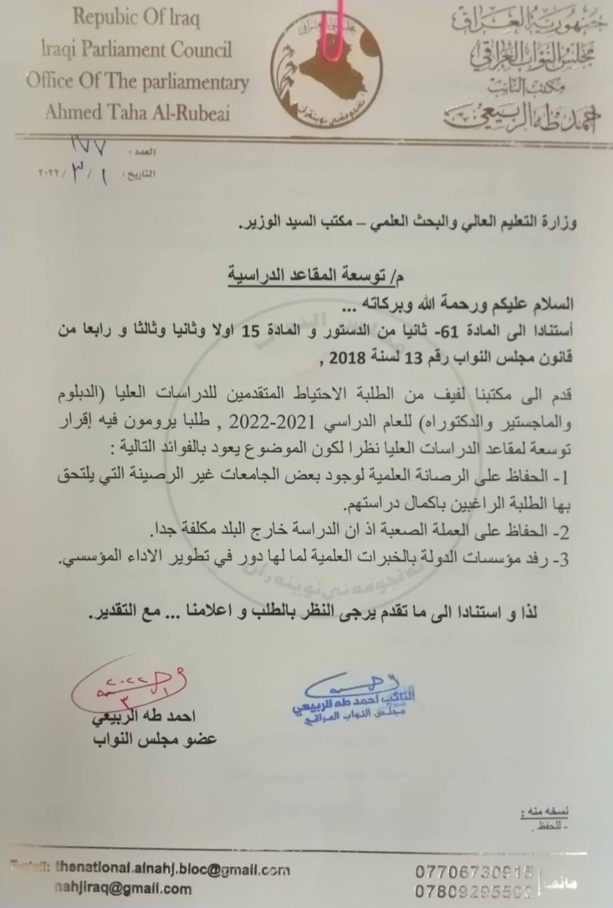 اخبار العراق بالوثيقة…النائب الربيعي يطالب وزارة التعليم العالي والبحث العلمي بتوسعة مقاعد الدراسات العليا في 03/03/2022 جريدة الناصرية الالكترونية: بالوثيقة النائب الربيعي يطالب وزارة التعليم العالي والبحث العلمي بتوسعة مقاعد الدراسات العليا. شارك هذا الموضوع: النقر للمشاركة على X (فتح في نافذة جديدة) X انقر للمشاركة على فيسبوك (فتح في نافذة جديدة) فيس بوك مرتبط أكمل القراءة