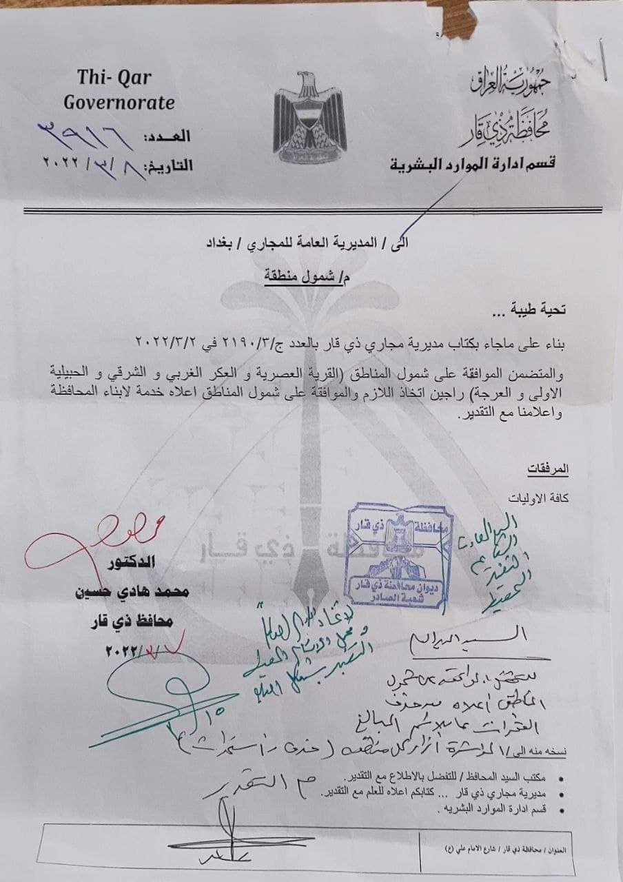 وافقت المديرية العامة للمجاري في وزارة الاعمار والاسكان والبلديات في بغداد اليوم الاربعاء على طلب تقدمت به مديرية مجاري ذي قار مشفوعا بكتاب رسمي من محافظ ذي قار محمد هادي الغزي لتوسيع خدمات المجاري في مدينة الناصرية وشمول مناطق اضافية .