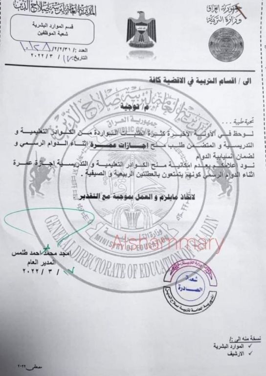 اخبار العراق بالوثيقة..التربية تصدر توجيهاً يخص إجازة العمرة لكوادرها في 20/03/2022 جريدة الناصرية الالكترونية : بالوثيقةالتربية تصدر توجيهاً يخص إجازة العمرة لكوادرها. شارك هذا الموضوع: النقر للمشاركة على X (فتح في نافذة جديدة) X انقر للمشاركة على فيسبوك (فتح في نافذة جديدة) فيس بوك مرتبط أكمل القراءة