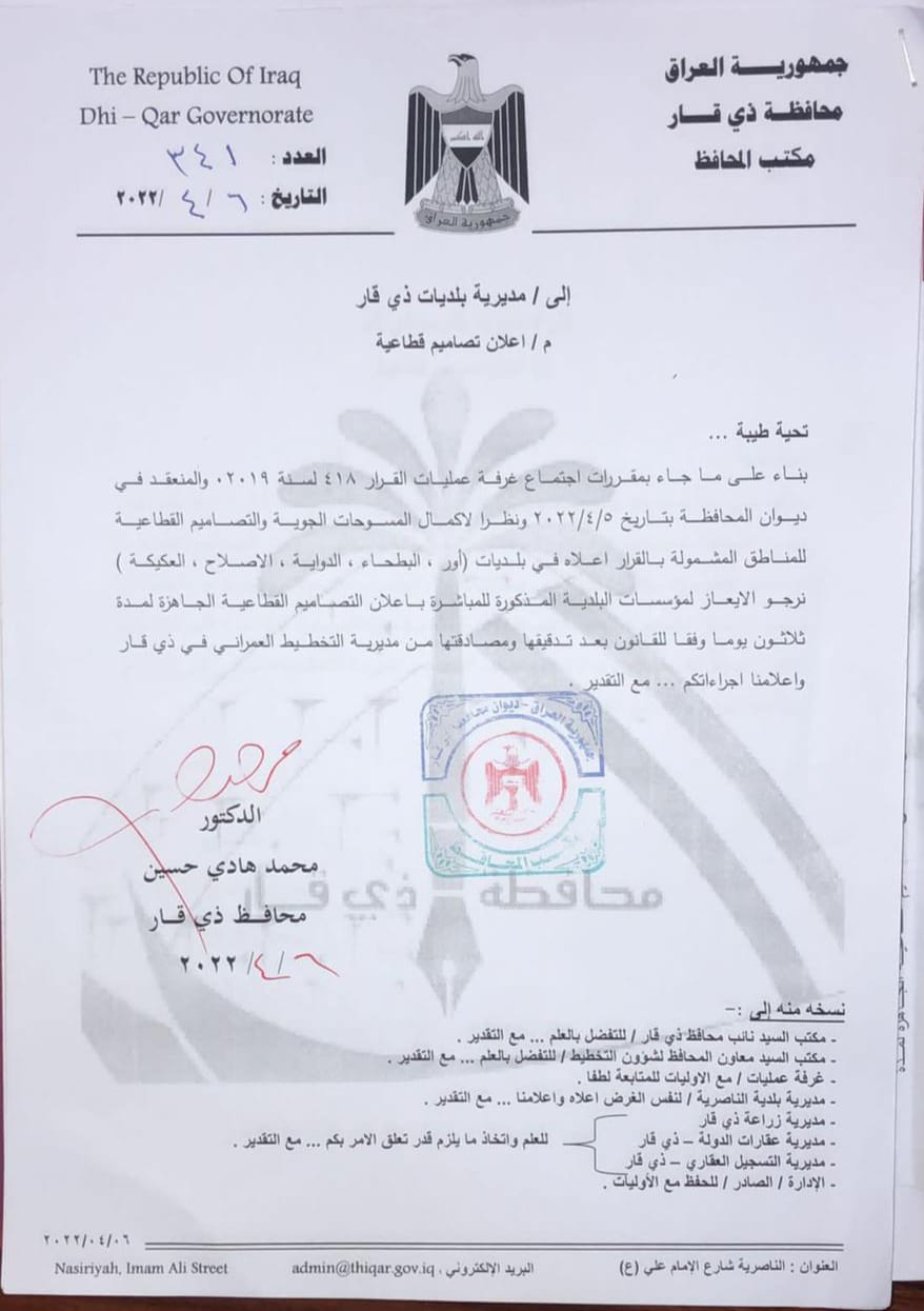 بالوثيقة… ذي قار تعلن استكمال التصاميم القطاعية لخمسة مدن لتمليك المتجاوزين